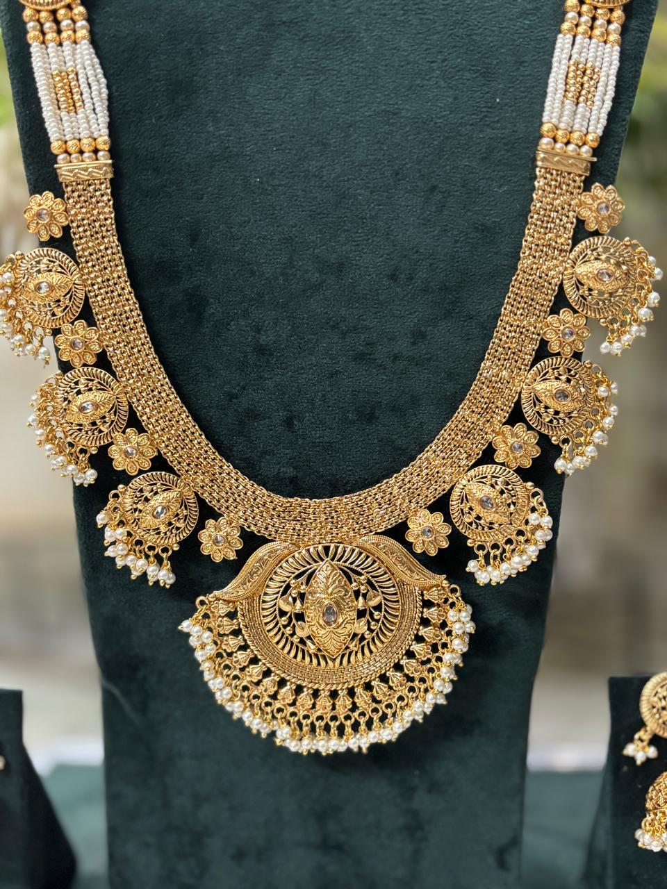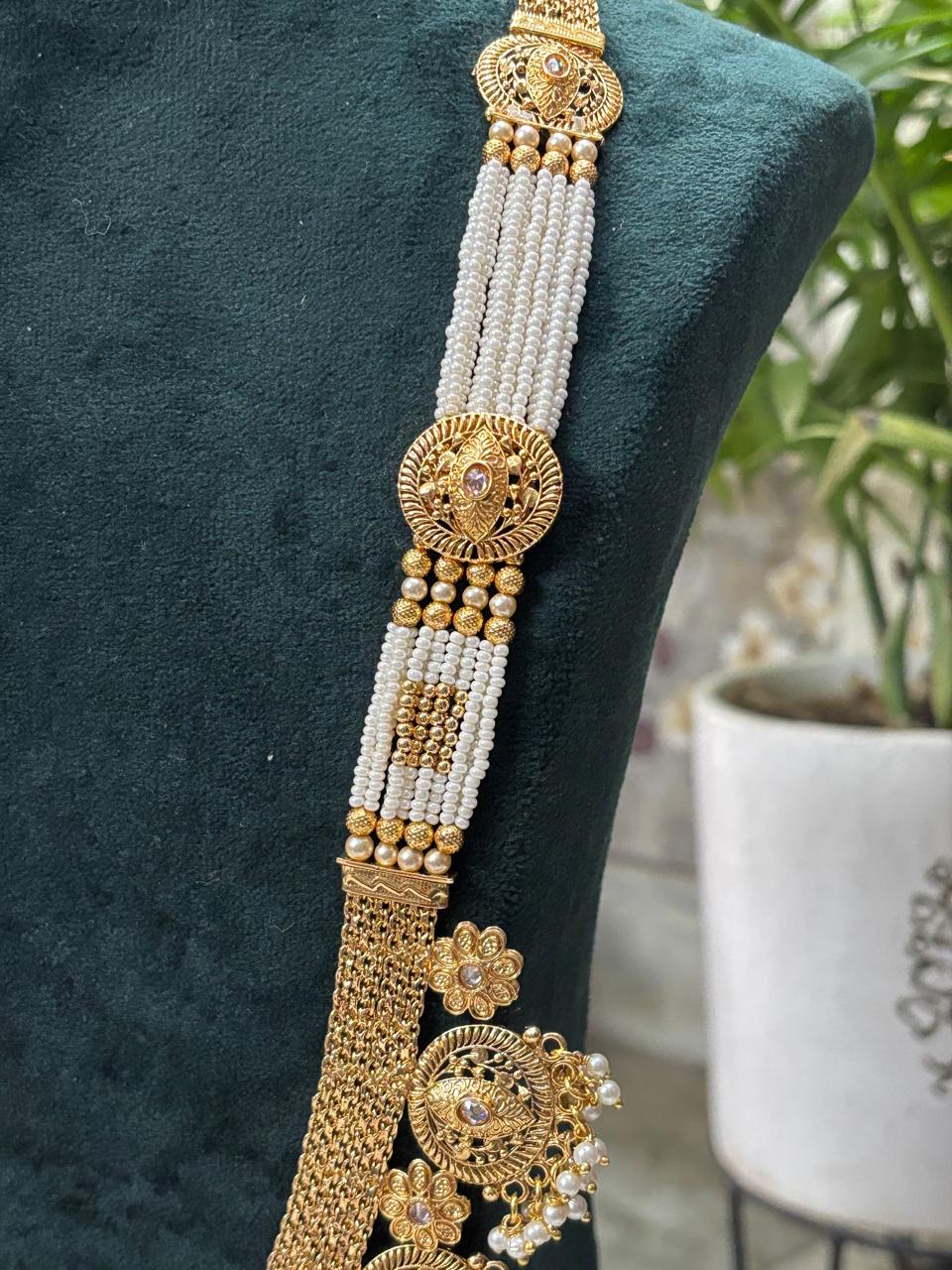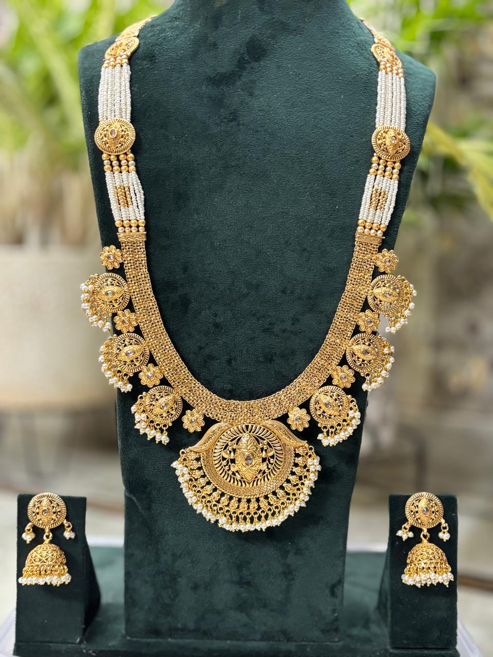 Perfect for weddings, festive occasions, and cultural celebrations, it pairs beautifully with sarees, lehengas, and all traditional outfits. The long, graceful design adds a regal touch, making it a standout centerpiece in your jewelry collection.